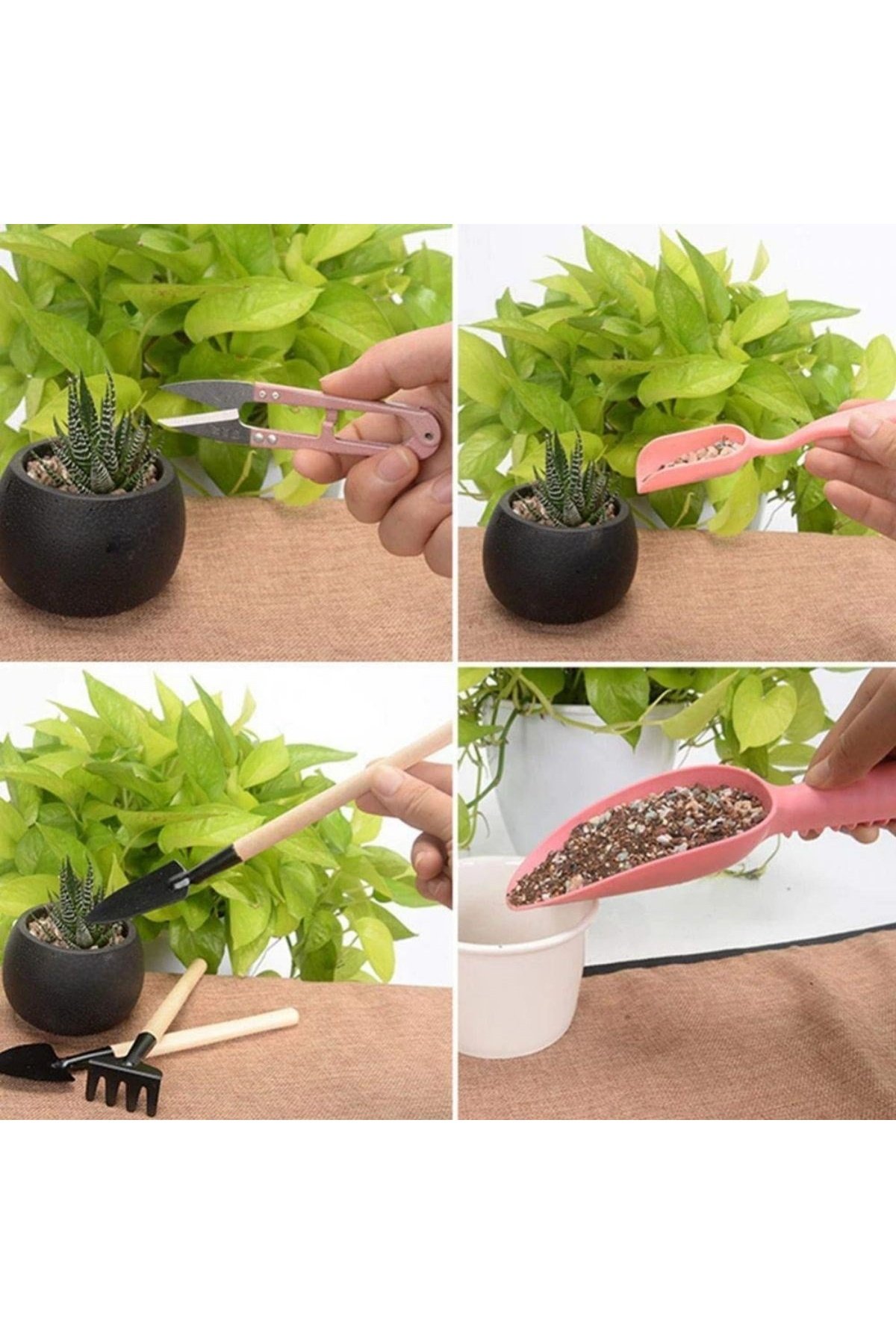 Kazma, toprağı gevşetme, ekme, sulama, budama vb.bir çok özelliği bünyesinde barındıran Minyatür bahçe aletleri seti Bitki Ekim ve Bakım Seti , sukulent bonsai,orkide,süs bitkileri ve küçük bitkiler için idealdir.